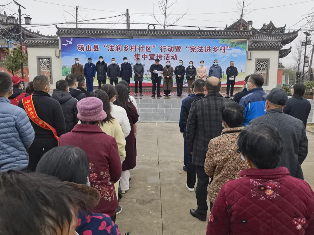 为大力实施“八五”普法规划,加强宪法的学习宣传,有效提升基层群众的法治意识和法治素养,11月28日,砀山县司法局联合公安局、民政局、乡村振兴局、妇联等15家单位在李庄镇李园新村开展“法润乡村社区” 行动暨“宪法进乡村”集中宣传活动。
