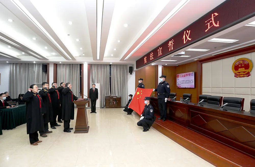 为进一步弘扬宪法精神、树立宪法权威,增强人民法官的使命感、责任感和荣誉感,近日,萧县人民法院举行新任命法律职务人员宪法宣誓仪式,全体员额法官参加,院党组副书记、副院长祖承逖担任监誓人,宣誓仪式由党组成员、政治部副主任杨晓军主持。 宣誓仪式在庄严的中华人民共和国国歌声中拉开序幕。