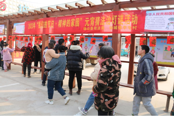 元宵佳节前夕,县司法局将法治文化与中国传统文化相结合,组织普法志愿者在砀城镇李屯村、李庄镇李园新村开展了“我们的节日·精神的家园”元宵猜法治灯谜活动。