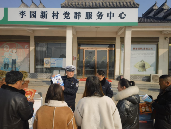 1月31日,县公安局交警大队、派出所普法志愿者深入李庄镇李园新村开展“法润乡村社区”宣传活动。