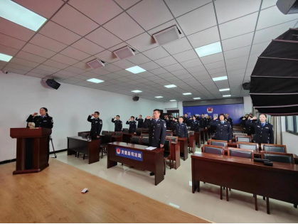 奏唱国歌后,县局局长姜平右手举拳,带领全体司法行政干警庄严宣誓:“我宣誓:忠于中华人民共和国宪法,维护宪法权威,履行法定职责,忠于祖国、忠于人民,恪尽职守、廉洁奉公,接受人民监督,为建设富强民主文明和谐美丽的社会主义现代化强国努力奋斗!”誓言铿锵有力、掷地有声,表达了全局司法行政干警对宪法的尊崇和信仰。