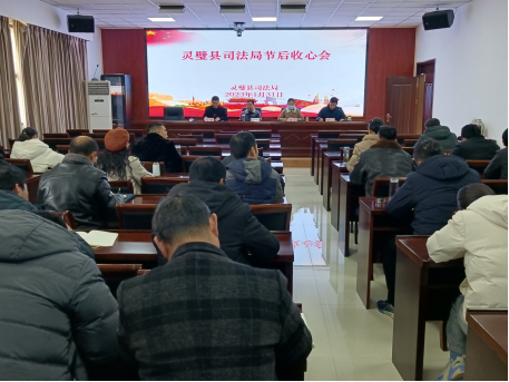 新春伊始,万象初新,为贯彻落实全省“新春第一会”精神,持续深化“一改两为”,全面提升工作效能,让全局干部职工迅速进入工作状态,2023年1月31日,灵璧县司法局召开节后收心会,会议由局长姜平同志主持,为全局干部职工收心提神,强化作风纪律,局全体中层以上干部参会,确保全年司法行政工作起好步、开新局。